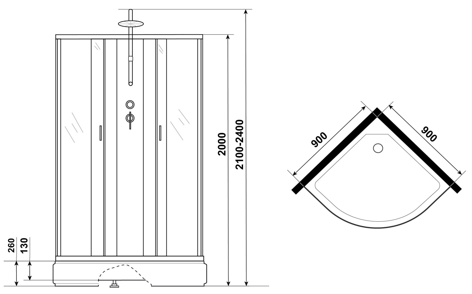 • Размеры (ДхШхВ) 90x90х210-240