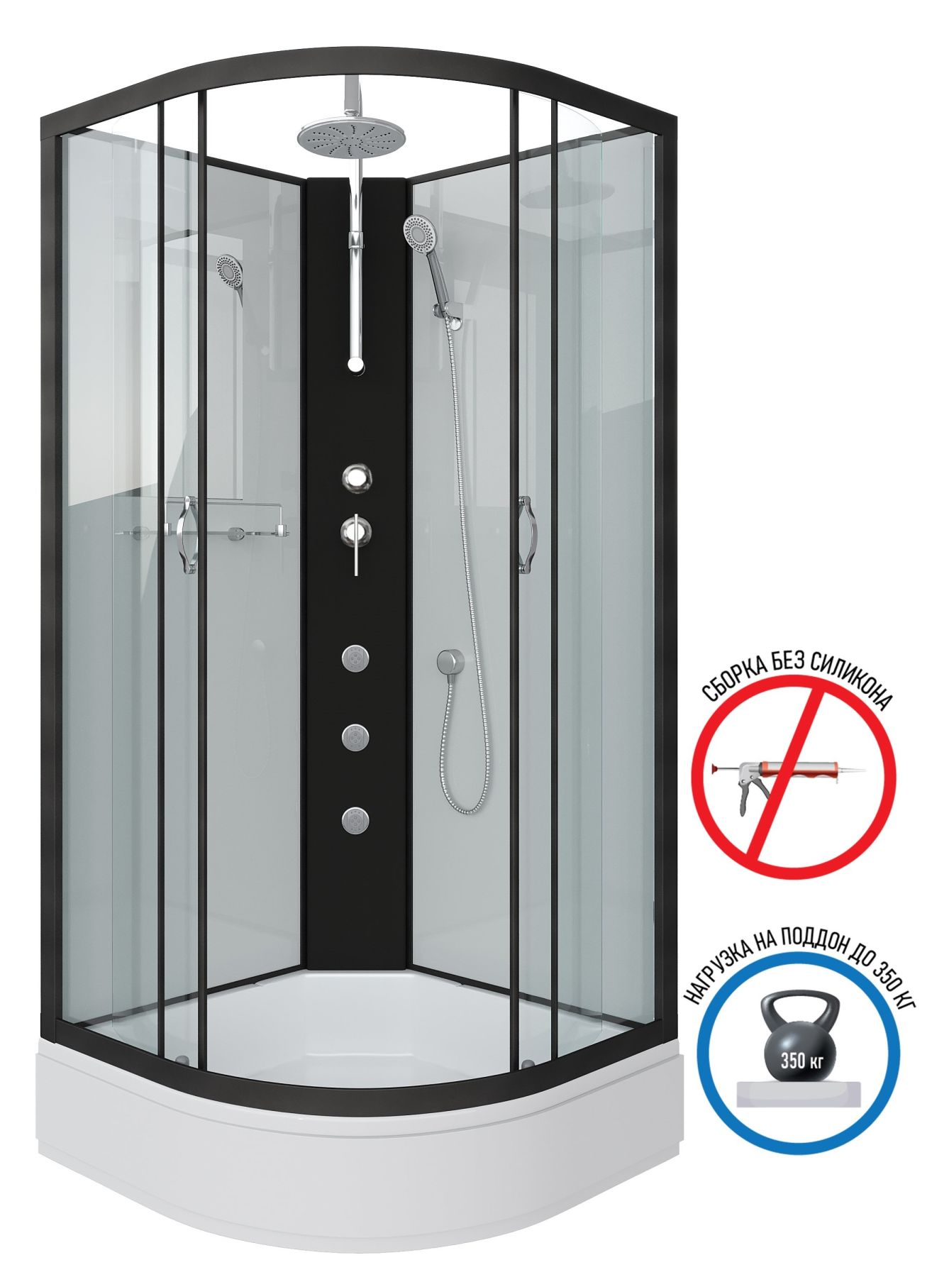 Душевая кабина Niagara NG-6701-14BKTG с гидромассажем 90x90см чёрный/прозрачное