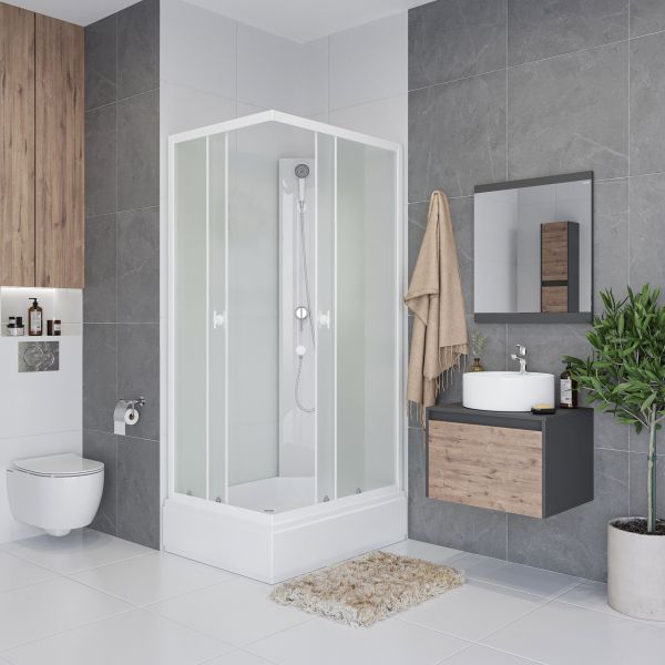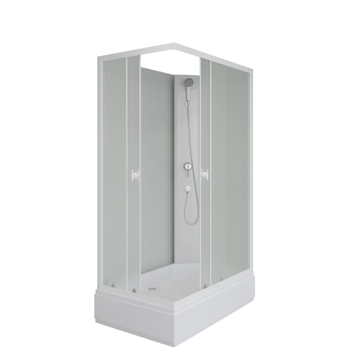 Размеры 100x80x195 смДушевая кабина, в простой комплектации серия Promo, основные функции ручная лейка. Поддон акриловый на железном каркасе, высота поддона от пола 26 см, внутренняя глубина чаши 13 см. Чаша поддона установлена на металлический каркас, с регулируемыми ножками. Нагрузка на поддон до 300 кг.Панель поддона съемная.Стенки задние закаленное стекло 4 мм - белое матовое.Стенки передние закаленное стекло 4 мм - белое матовое.Смеситель латунь с керамическим картриджем (устойчивый к плохой воде - гарантия 10 лет)Ручная лейка устанавливается на любую высоту (держатель в комплекте)