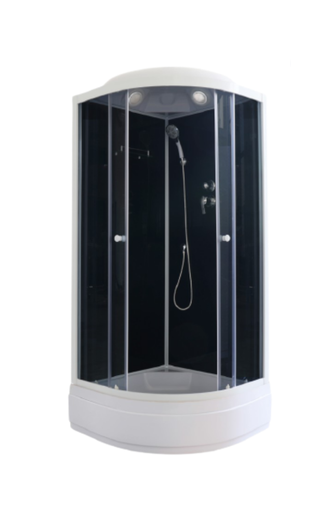 БЕЗСИЛИКОНОВАЯ СБОРКАДушевая кабина Parly CM101Размер: 100х100х215 смВ душевой кабине стильно сочетается белый профиль и черные задние стенки. За счет контраста оттенков модель смотрится современно.Достоинства:Тонированное закаленное стекло толщиной 4 мм практически невозможно разбить. В случае битья полотно рассыпается на мелкие гранулы с тупыми концами о которые невозможно пораниться.Задние стенки из черного закаленного стекла, 4 мм.Белый алюминиевый профиль не подвержен коррозии.Поддон: средний 26 см с бортиком 2 см. Высота бортика предупреждает разбрызгивание воды и позволяет замачивать в поддоне небольшие вещи.Ролики: белые на клипсах, верхние двойные и одинарные нижние. Раздвижные двери ходят плавно и не соскакивают с направляющих.Комплектация: полка, верхний душ ТРОПИК, ручной душ NEW, магнитный замок soft close.Внутри больше места, чем в моделях аналогичного размера за счет отсутствия центрального столба.Сборка без применения силикона. Конструкция душевой кабины обеспечивает слив воды внутрь поддона. Сам поддон по всему периметру оснащен водонепроницаемым бортиком высотой 2 см, который исключает перелив воды за пределы душевой зоны.Внимание! Производитель оставляет за собой право вносить изменения в конструкцию и комплектацию моделей без предварительного уведомления!