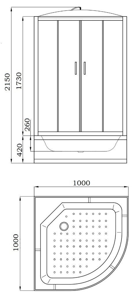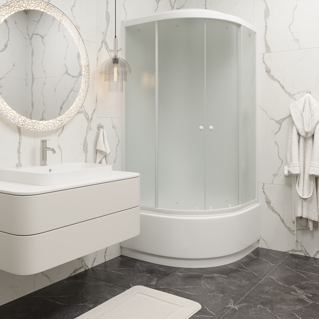 • Поддон, крыша и экран выполнены из белого ABS-пластика