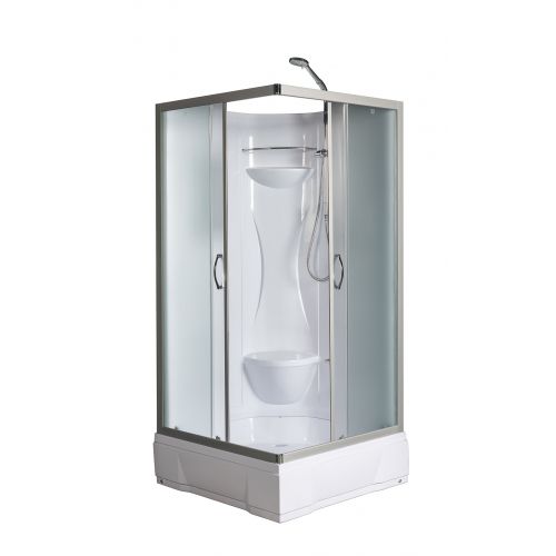 ~ без крыши ~ штанга ~ ручной душ 3-х позиц. ~ смеситель ~ зеркало ~ полочки (2 шт) ~ сиденье ~ поддон квадр.низ.со съемн. экраном (Н=26см) ~ сифон