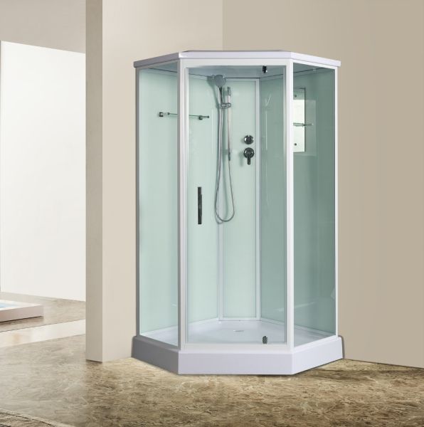 Стекло 6 мм. Задняя стенка - крашеное непрозрачное белое . Фронтальное стекло и боковые стекла прозрачные. Дверь стекло прозрачное.
