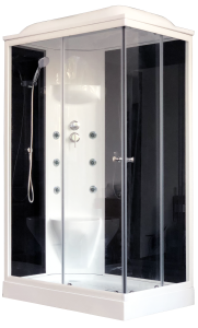 Душевая кабина RB 8120HP7-BT – стильное решение для ванной комнаты. Черные задние стенки и прозрачные стекла дверей придадут элегантность и гармонично дополнят уникальный дизайн ванной комнаты. Определяя место для модели в комнате, обратите внимание, что кабина левосторонняя. Акриловый поддон с антискользящим покрытием имеет оптимальную для входа высоту. Движение дверей по направляющим обеспечивают подшипниковые ролики. Кабина оснащена гидромассажной системой состоящей из шести форсунок, верхний душ с эффектом дождя снимет усталость. Также в кабине есть встроенное сиденье и полочка для средств гигиены.