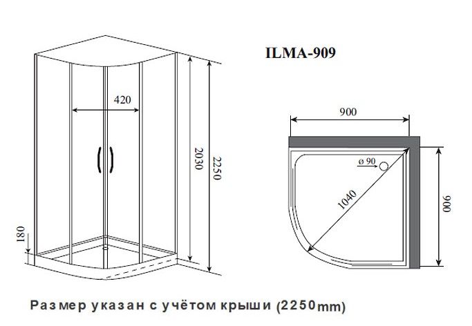 Душевая кабина Timo Premium Ilma Black 909 90 x 90 см, четверть круга, ILMA-909 BДушевая кабина