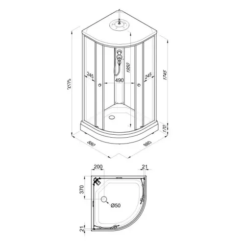 Душевая кабина Triton Грэй Щ0000066361 88x88 см профиль чёрный стекло тонированное