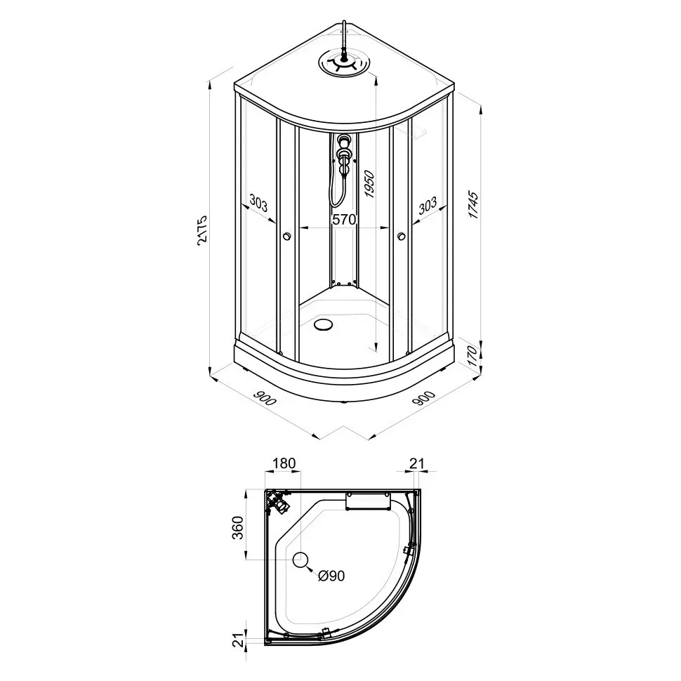 • Размеры: 90х90х217.5