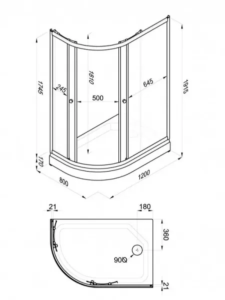 • Высота с поддоном: 191.5 см