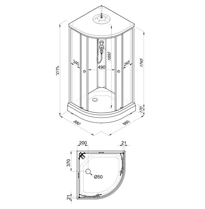 • Сифон душевой кабины: 50 мм