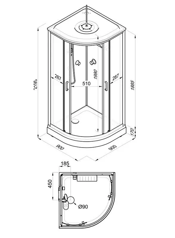 • Размер: 90 x 90 x 219.5 см
