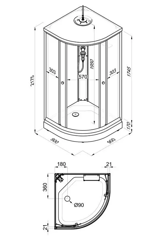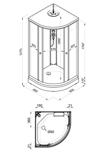 • Размер: 90 x 90 x 217.5 см