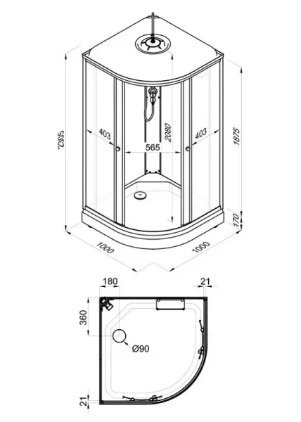 • Душевая кабина с крышей