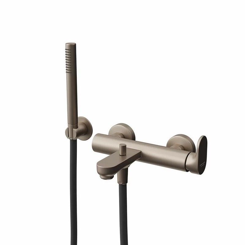 Комплект включает ручной душ с одним режимом струи, обеспечивающим равномерное и комфортное распределение воды, а также душевой шланг длиной 150 см для удобства использования. Модель предназначена для настенного монтажа и оснащена стандартом подключения G1/2, что упрощает установку и совместимость с большинством сантехнических систем.