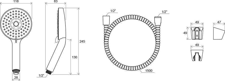 - держатель для душа: пластиковый