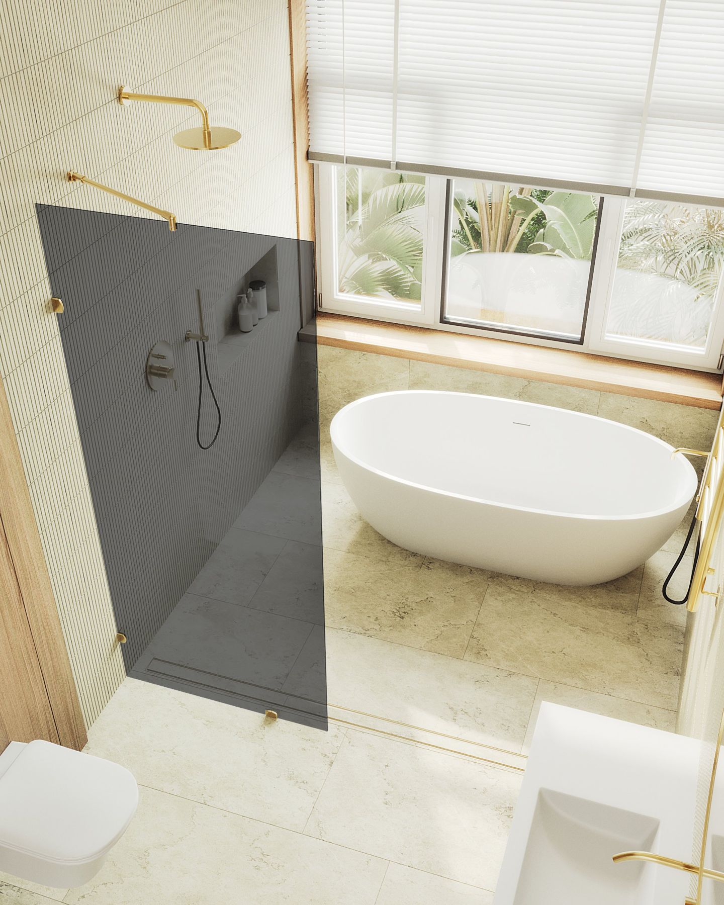 Душевая перегородка MaybahGlass MGD-274-3 79см золото купить