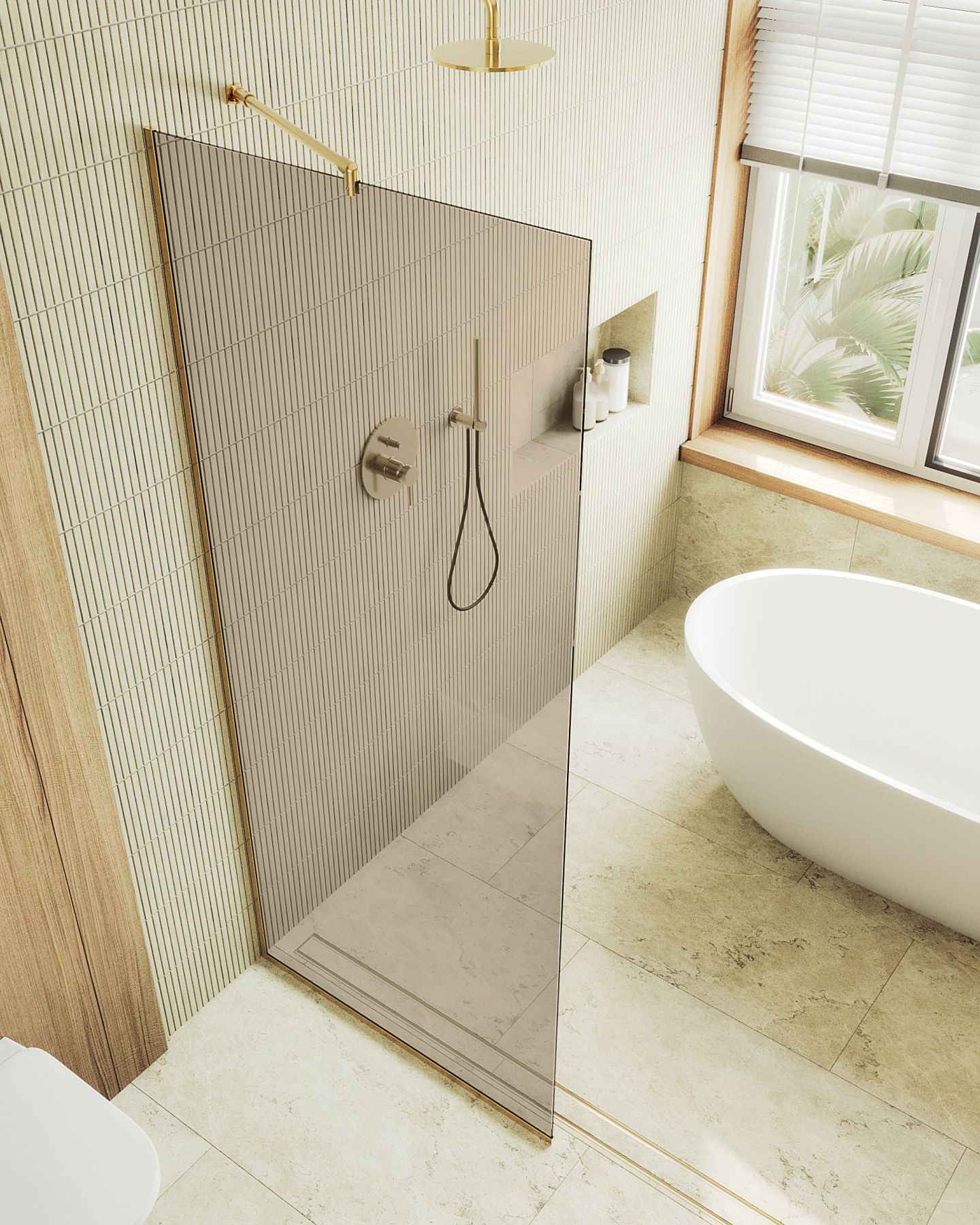 Стеклянная душевая перегородка в профиле - стильный и функциональный элемент, предназначенный для разделения пространства в ванной комнате. Перегородка изготовлена из закаленного стекла, обеспечивающего безопасность и долговечность. Профиль из анодированного аллюминия добавляет конструкции прочности и устойчивости. Благодаря разнообразию размеров и дизайнов, стеклянная душевая перегородка идеально впишется в любой интерьер. Закаленное стекло , цвет бронза , толщина 8 мм , 1950*790-1 шт.