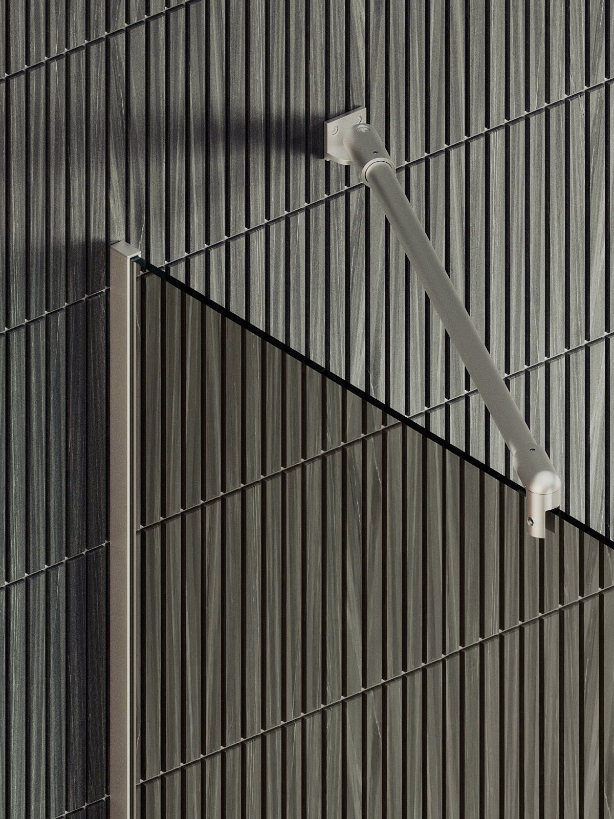 Душевая перегородка в профиле с полотенцесушителем представляет собой компактное и функциональное решение для разделения пространства в ванной комнате . Она изготовлена из закаленного стекла,анодированного алюминиевого профиля, что обеспечивает прочность и долговечность конструкции. Закаленное стекло , цвет бронза , толщина 8 мм , 1950*790-1 шт.