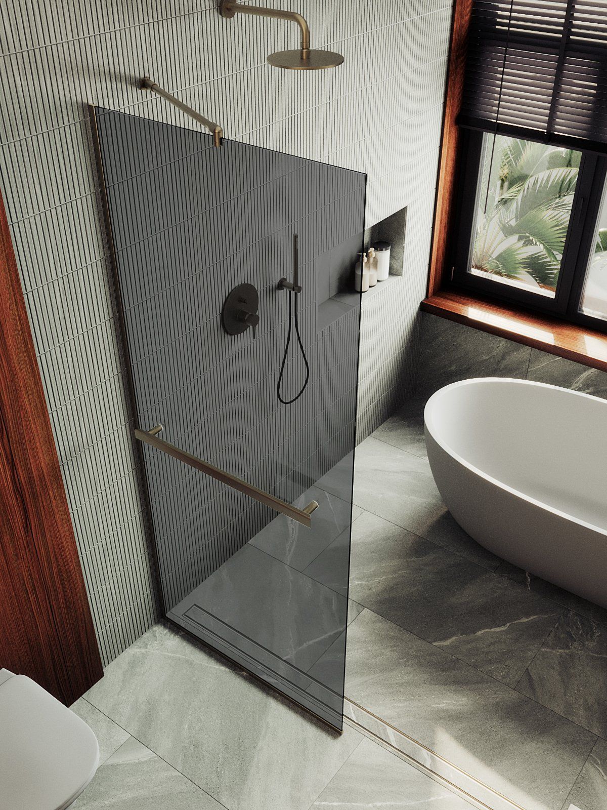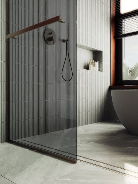 Душевая перегородка в профиле с полотенцесушителем представляет собой компактное и функциональное решение для разделения пространства в ванной комнате . Она изготовлена из закаленного стекла,анодированного алюминиевого профиля, что обеспечивает прочность и долговечность конструкции. Закаленное стекло , цвет графит , толщина 8 мм , 1950*790-1 шт.