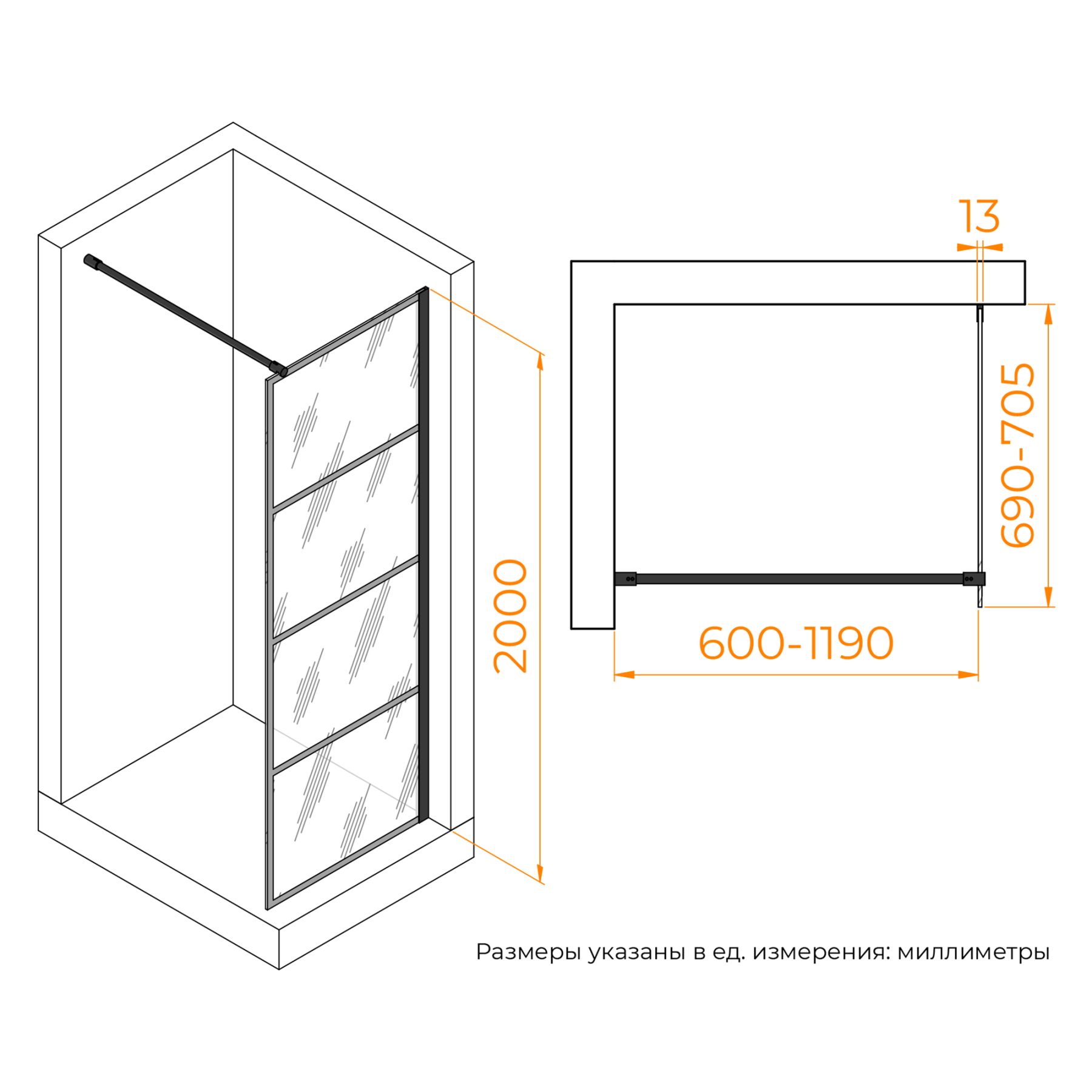 Душевая перегородка WA-019B — идеальное решение для создания стильного и функционального пространства в ванной комнате. С общей высотой 2000 мм, она надежно защищает от разбрызгивания воды за пределы душевой зоны.