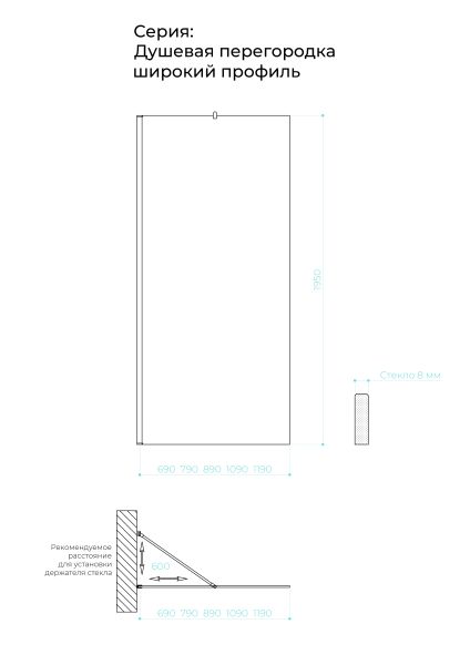 Душевая перегородка в профиле by Deonria P-195-109-8-T-HM 109см хром матовый/прозрачный купить