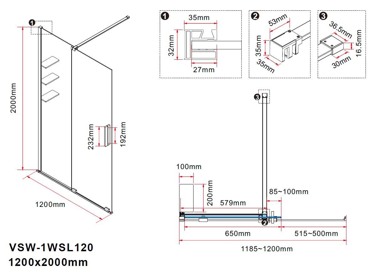 Душевая перегородка Vincea Walk-In VSW-1WSL120CGGM, 1200*2000, вороненая сталь, стекло тонированное