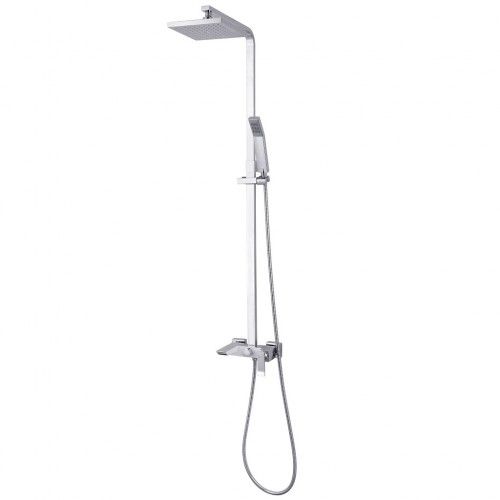 Смеситель для ванны и душа с регулируемой высотой штанги, фиксированным изливом и верхней душевой лейкой «Тропический дождь»