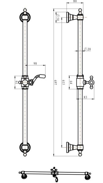 - Держатель ручного душа, расположенный на держателе на штанге. С возможностью перемещения по штанге.