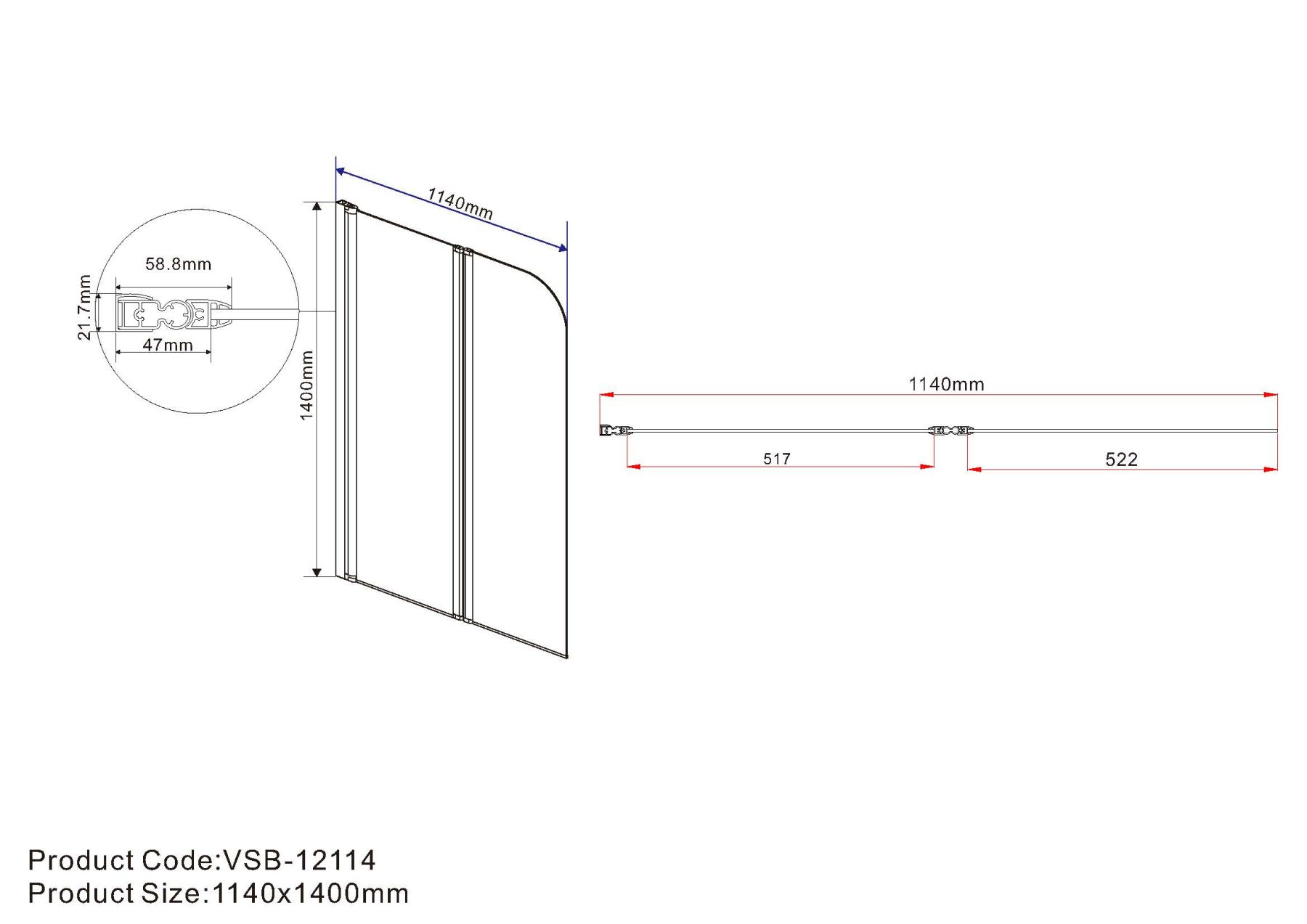 Душевая шторка на ванну Vincea VSB-12114CLGM, 1140*1400, вороненая сталь, стекло прозрачное