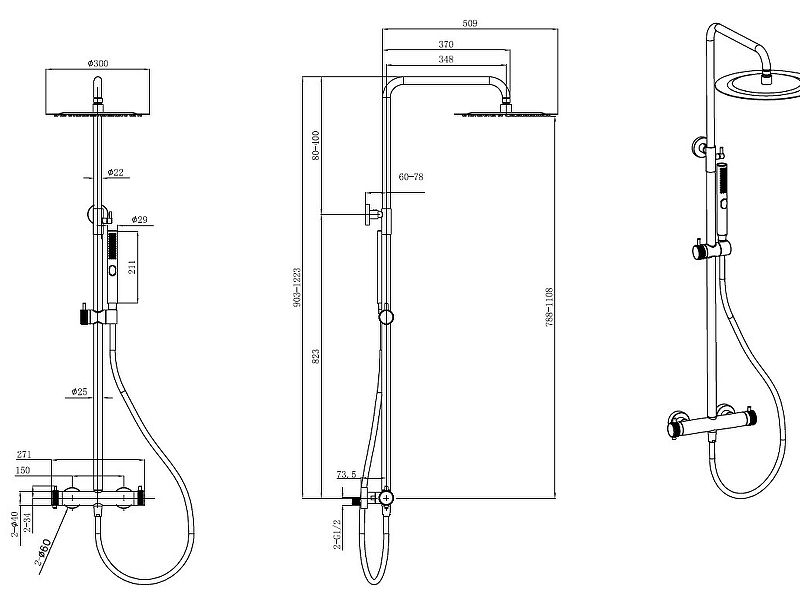 Душевой шланг: металлическая оплетка, длина 150 см.