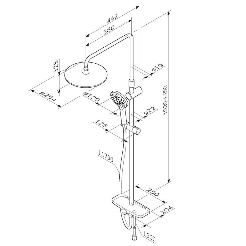 Тотальный дизайн в действии: все детали душевой системы – от пропорций ручного и верхнего душей до рисунка расположения форсунок на лейках.Премиальные размеры и продуманные детали: увеличенный диаметр душевых леек (верхний душ 254 мм и ручной душ 120 мм) позволит ощутить преимущества тропического душа, тогда как увеличенная длина шланга 1750 мм обеспечит свободу движений во время принятия душа. Телескопическая поворотная штанга регулируется по высоте в диапазоне от 1030 до 1460 мм, обеспечивая комфорт для людей любого роста, а шаровой шарнир в держателе верхнего душа позволяет регулировать угол его наклона.Нижнее крепление штанги выполнено в виде полочки, а переключатель верхний-ручной душ является ее продолжением. Нажав на него, вы можете менять источник потока воды от ручной лейки к верхнему душу.