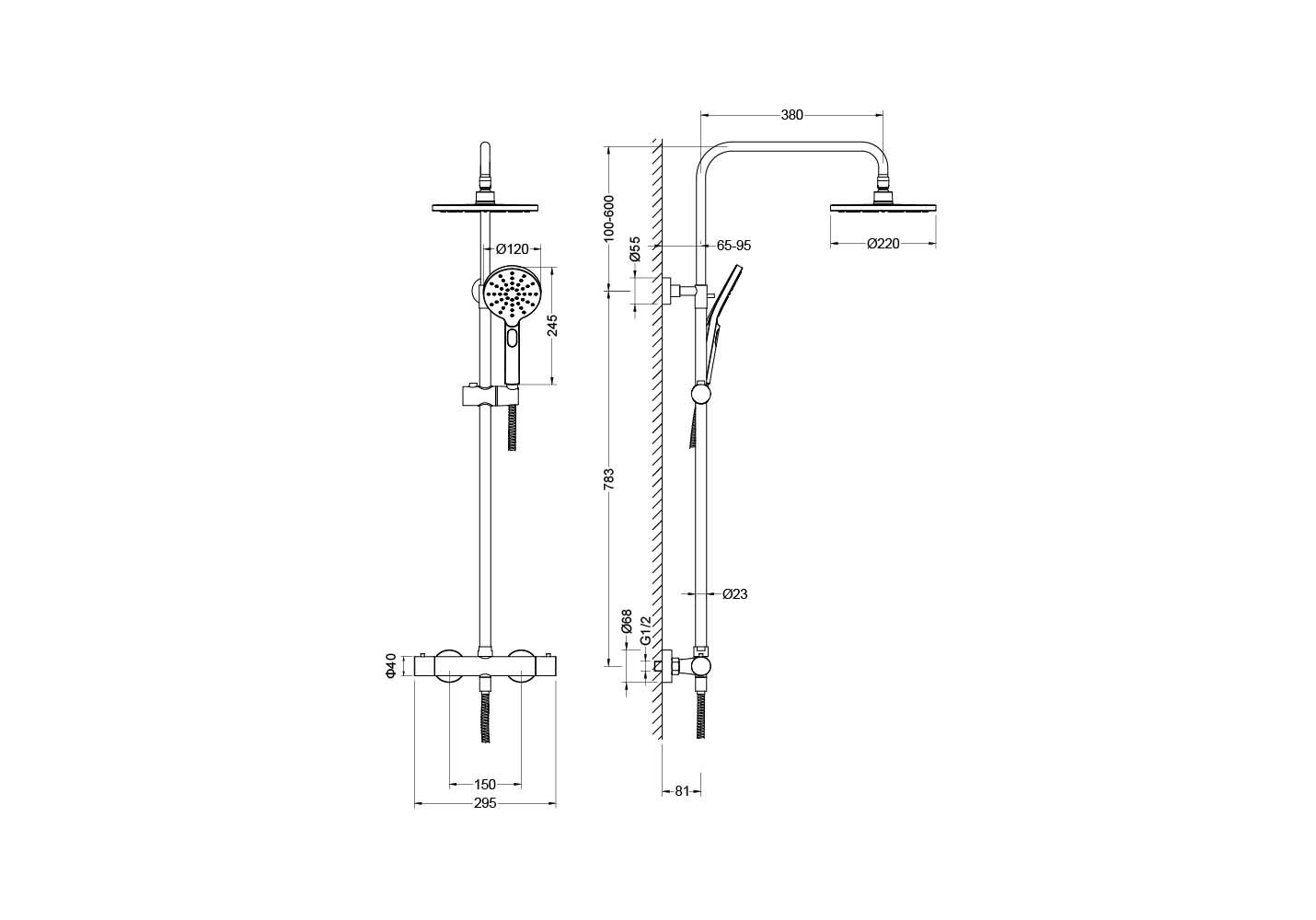 • Размер ручного душа, см: