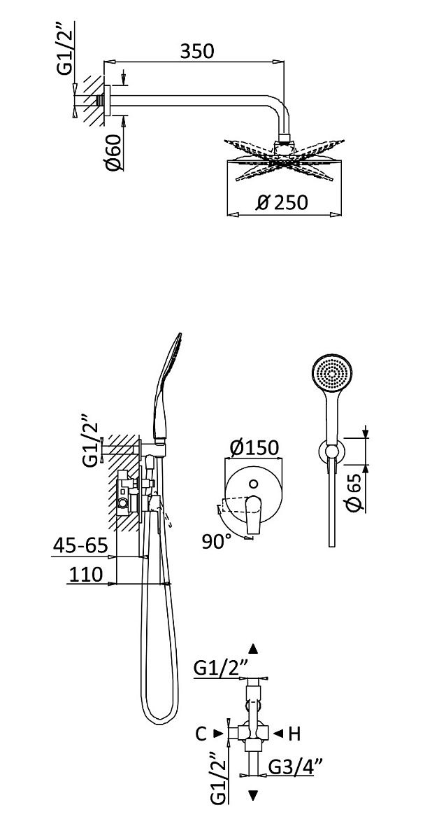 - Размер верхнего душа, см:25