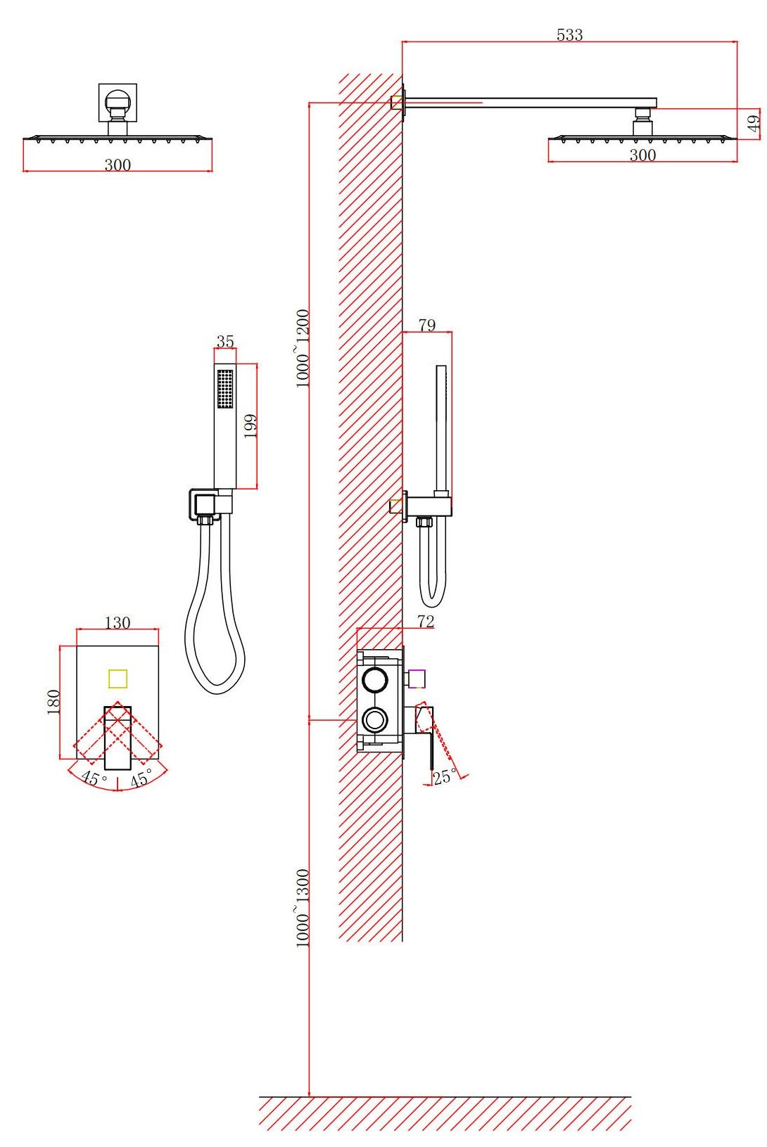 Размер верхнего душа, см:30