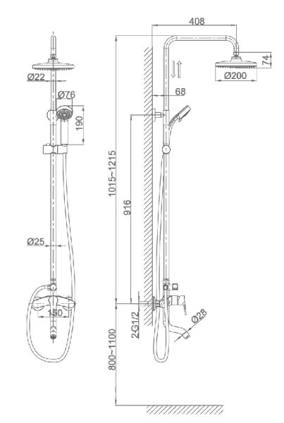 Душевая система DQ Rhein Marx хром DA1393701B07 купить