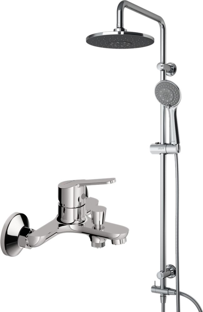 Душевая система Dorff NORMA D0711010Выгода в комплекте! Душевая система и смеситель для ванны и душа Norma по привлекательной цене. Душевая система Norma с тропическим душем, ручным душем с 5 функциями и длинным шлангом в 1750 мм - просто находка в своем сегменте. А стойки с возможностью регулировки по высоте и шланги с защитой от перекручивания станут приятным бонусом для тех, кто ценит эргономичность и функциональность.Однорычажный смеситель для ванны и душа Norma с надежным вакуумным дивертором собрал в себе лучшие немецкие качества: стильный дизайн, компактные размеры, европейское качество, прочность и долговечность.