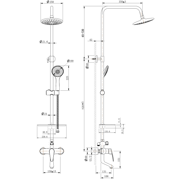 Душевая система Lemark Linara LM0462C для ванны и душа с регулируемой высотой штанги