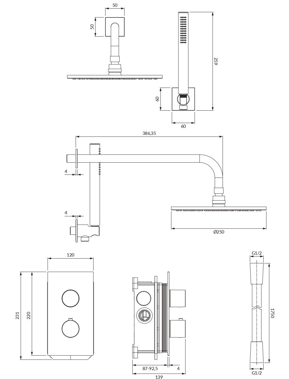 CONTOUR | термостатическая душевая система скрытого монтажаЦвет: хром