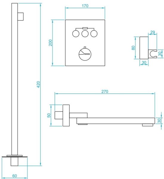 - Шланг ручного душа – нержавеющая сталь, длина 1.5 м