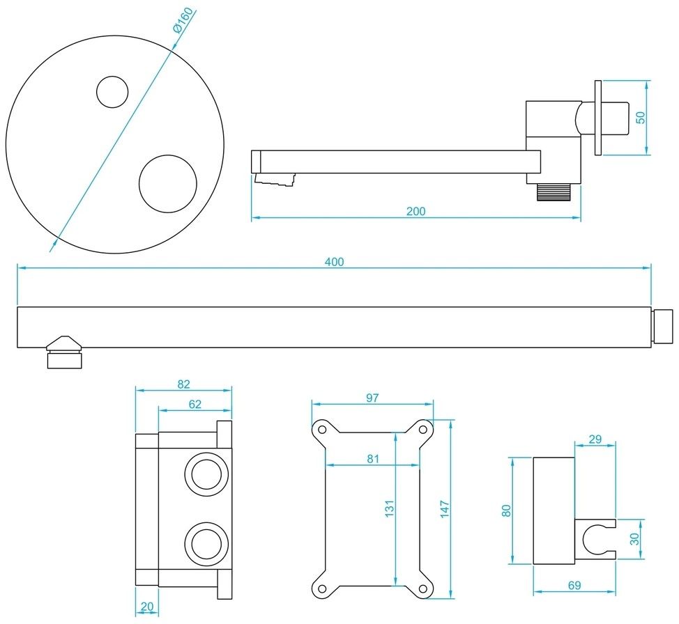 • Держатель ручного душа – латунь