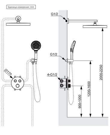 Размер верхнего душа, см:32