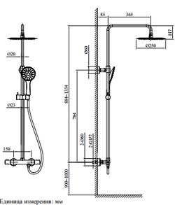 • Размер верхнего душа, см: