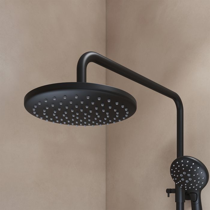 Смеситель с верхним душем из коллекции Ray в стильном черном матовом цвете – привлекательное, современное и практичное решение, которое будет органично сочетаться с любым дизайном ванной.
