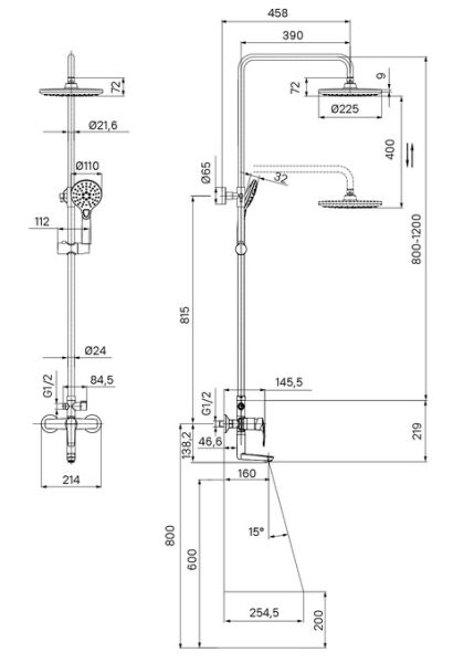 Регулируемая высота стойки (от 800 до 1200 мм) позволяет принимать душ с комфортом даже самым высоким.
