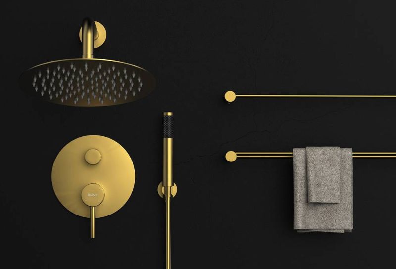 Raiber premium RPG-005 коллекция Graceful, матовое золотолатунный корпус, тропический душ из латуни,