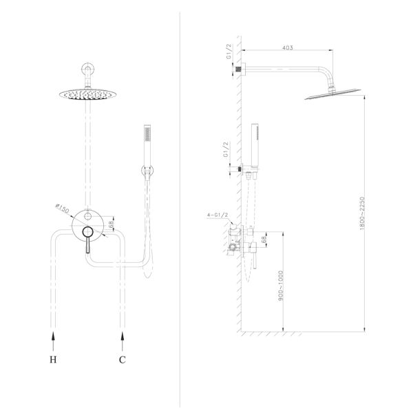 Размер верхнего душа, см:25