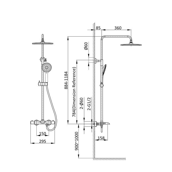 Душевая система Vincea Esse VSFS-1E1TMB термостатическая черныйСерия: