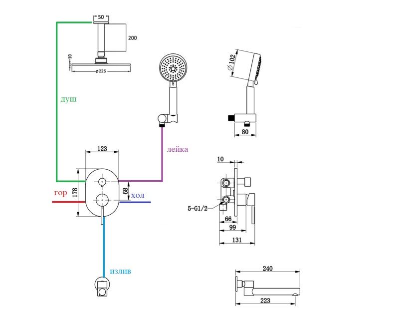 Душевая система встраиваемая Bronze de Luxe SCANDI 14582/1BR, бронза купить