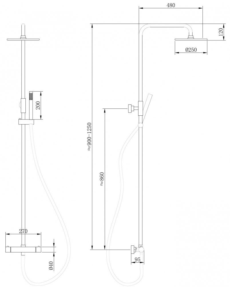 Размер верхнего душа, см:25