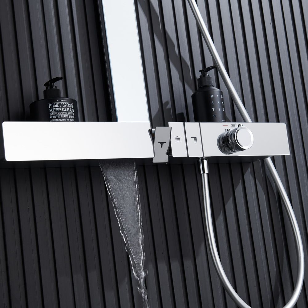 С помощью клавишного переключателя можно легко и удобно переключать функции. Тропический душ диаметром 30см и с каскадным расположением форсунок, позволяет ощутить падение капель как под дождем. Ручной душ имеет три положения для удобства использования. Излив «Водопад» позволяет использовать воду в направленном режиме. Термостатический картридж.