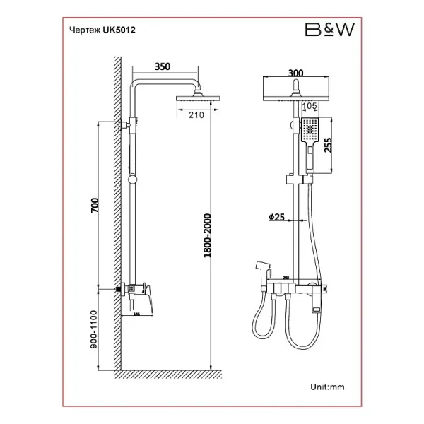 Душевая система Black&White Universe UK5012MG, Gun Metal, 5012MG